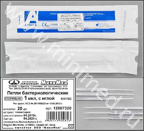 Петли бактериологические 1 мкл с иглой,стер.,п/с,уп.20 шт., Aptaca